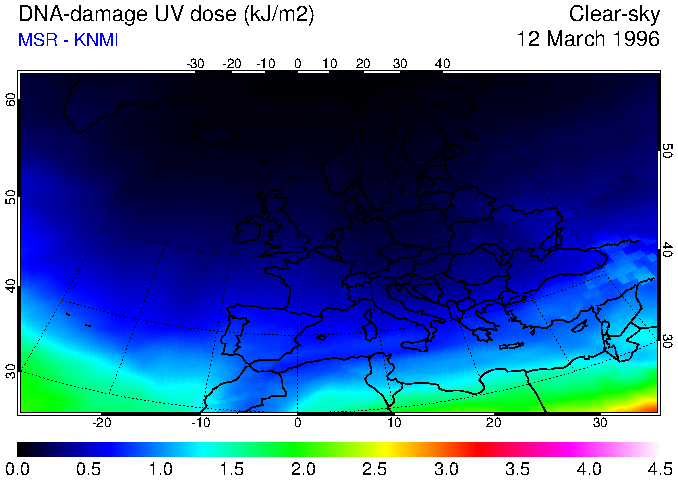 DNA-damage UV dose of 12 March 1996