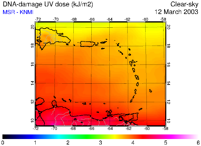 Clear-sky UV index:   erythemal