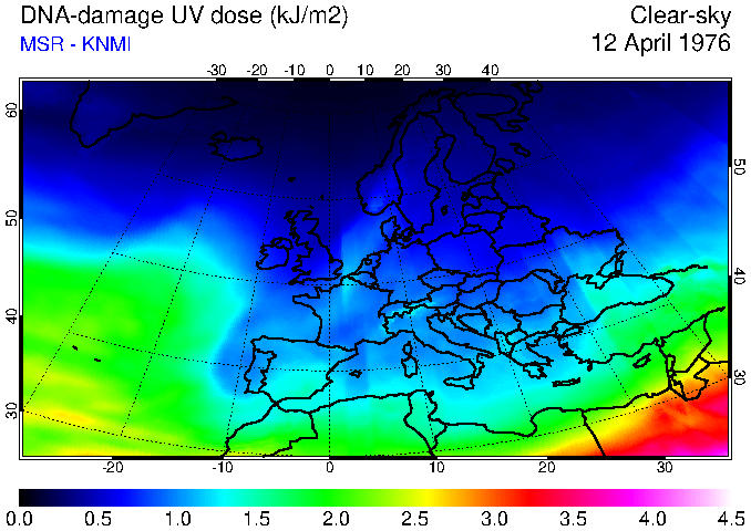 DNA-damage UV dose of 12 April 1976