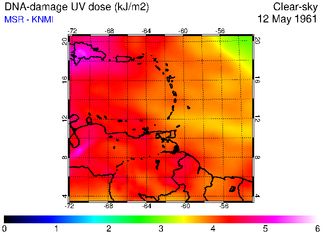 Clear-sky UV index:   erythemal