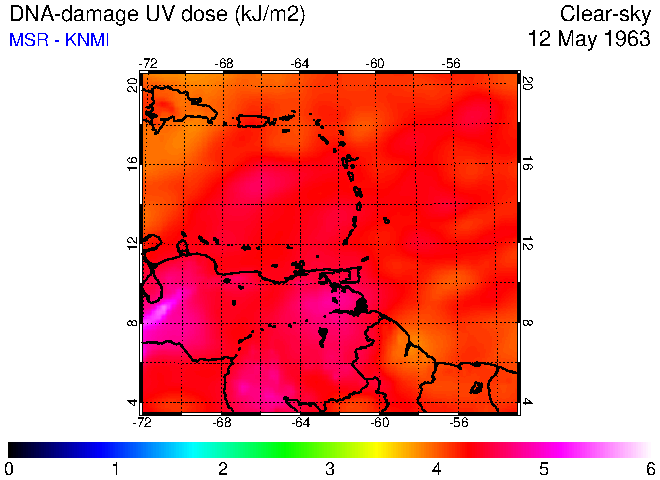 Clear-sky UV index:   erythemal