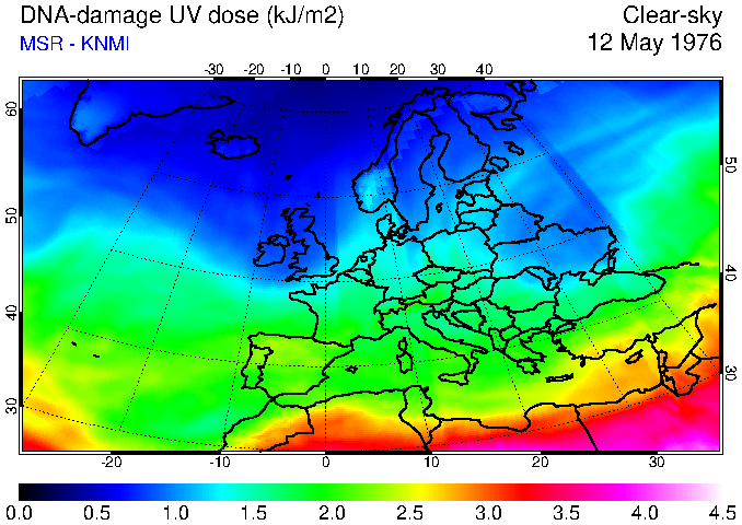 DNA-damage UV dose of 12 May 1976