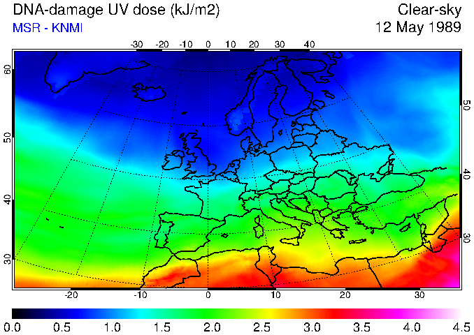 DNA-damage UV dose of 12 May 1989