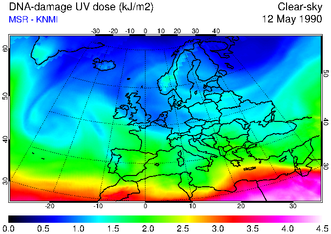 DNA-damage UV dose of 12 May 1990