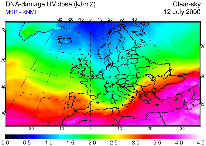 DNA-damage UV dose of 12 July 2000