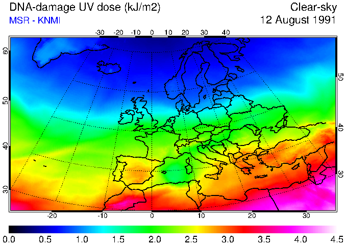 DNA-damage UV dose of 12 August 1991