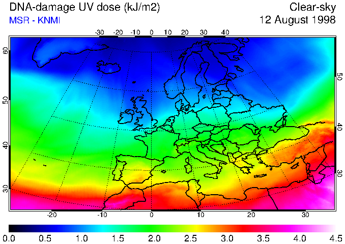 DNA-damage UV dose of 12 August 1998