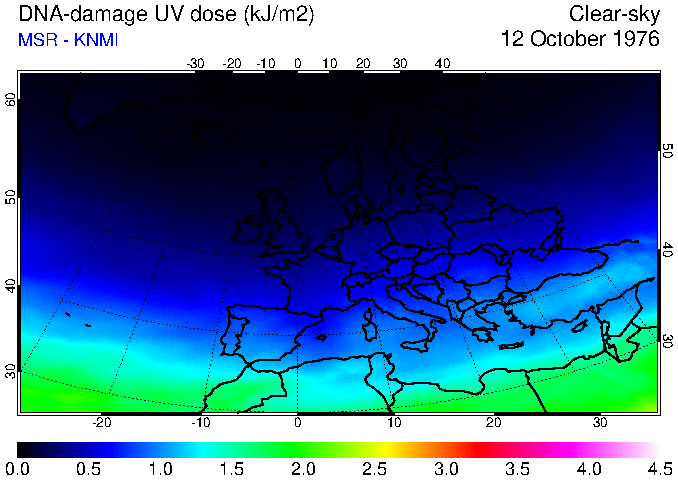DNA-damage UV dose of 12 October 1976