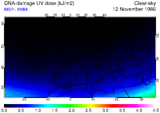 DNA-damage UV dose of 12 November 1986