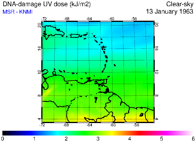 Clear-sky UV index:   erythemal