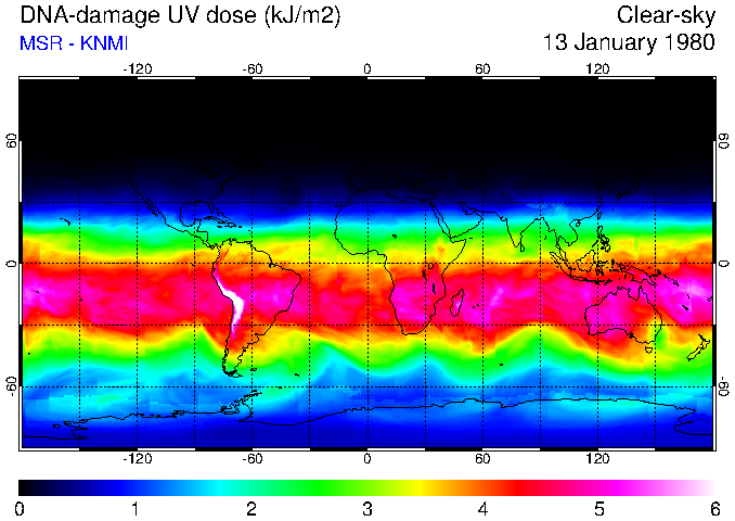 DNA-damage UV dose of 13 January 1980