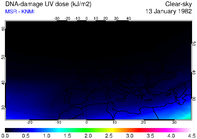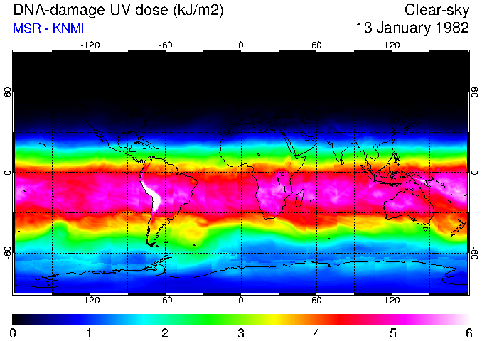 DNA-damage UV dose of 13 January 1982
