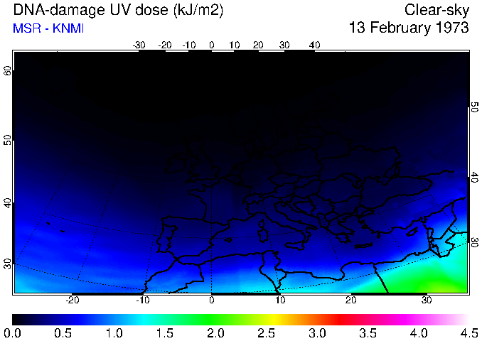 DNA-damage UV dose of 13 February 1973