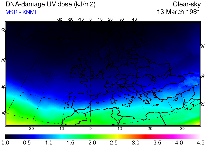 DNA-damage UV dose of 13 March 1981