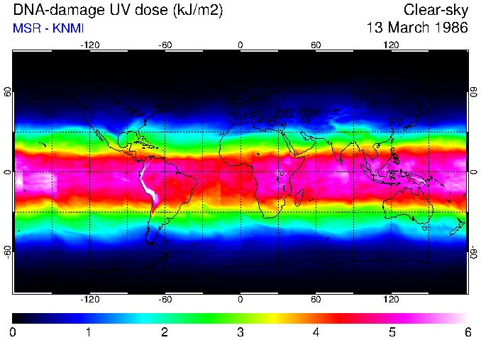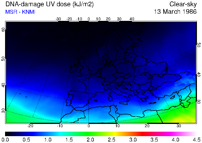 DNA-damage UV dose of 13 March 1986