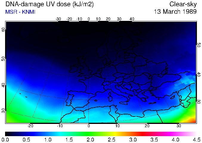 DNA-damage UV dose of 13 March 1989