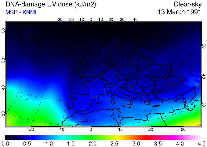 DNA-damage UV dose of 13 March 1991