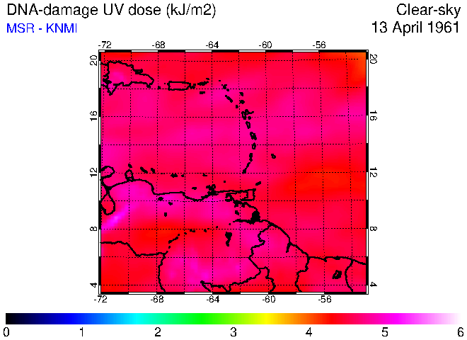 Clear-sky UV index:   erythemal