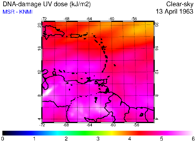 Clear-sky UV index:   erythemal