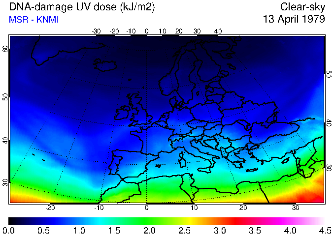DNA-damage UV dose of 13 April 1979