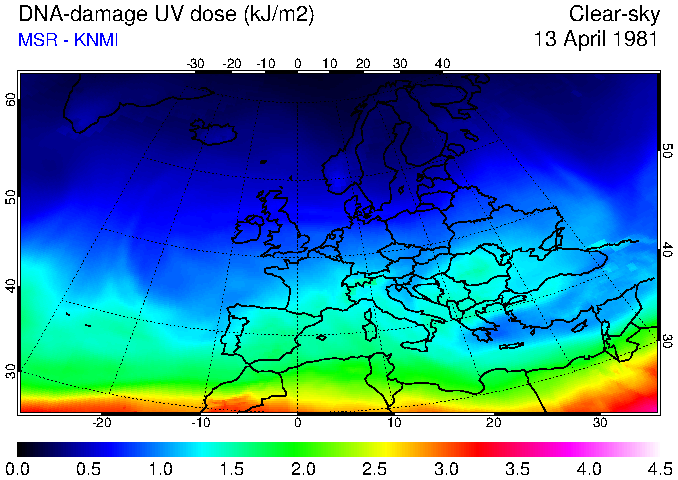 DNA-damage UV dose of 13 April 1981