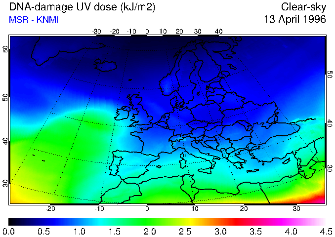 DNA-damage UV dose of 13 April 1996