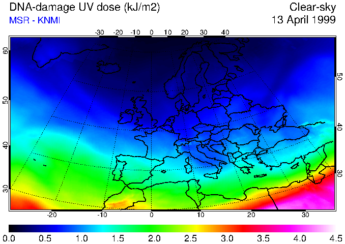 DNA-damage UV dose of 13 April 1999