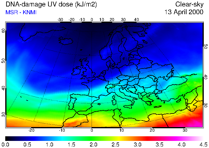 DNA-damage UV dose of 13 April 2000