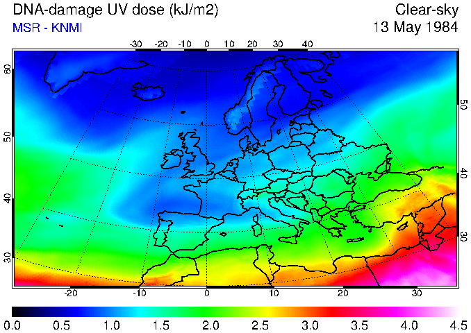 DNA-damage UV dose of 13 May 1984
