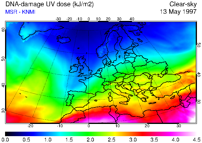 DNA-damage UV dose of 13 May 1997