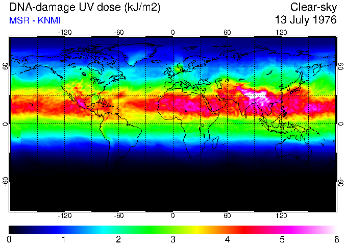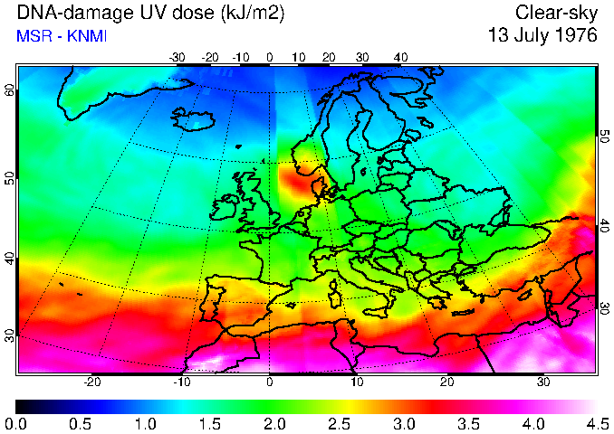 DNA-damage UV dose of 13 July 1976