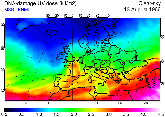 DNA-damage UV dose of 13 August 1966