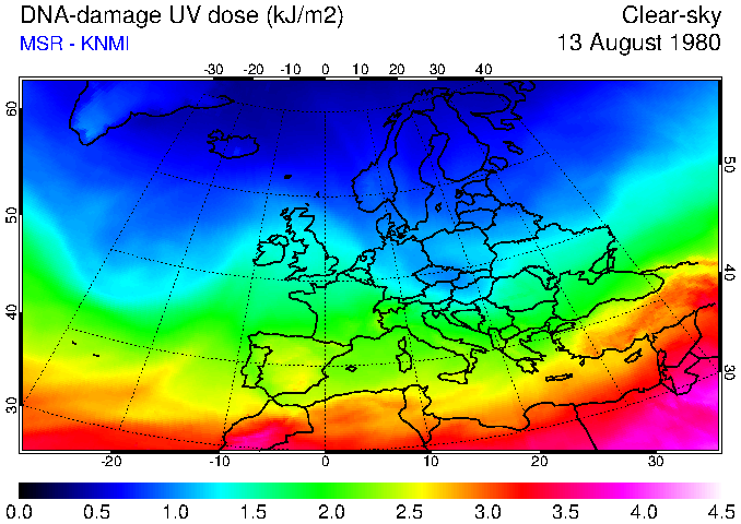 DNA-damage UV dose of 13 August 1980