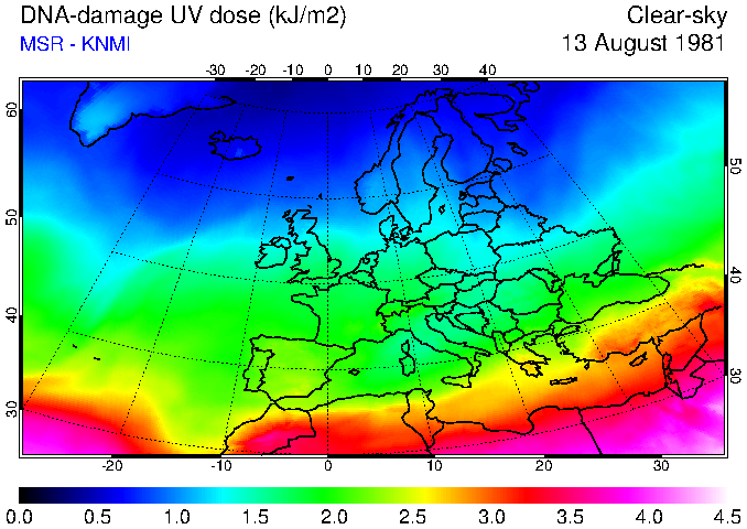 DNA-damage UV dose of 13 August 1981