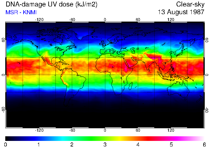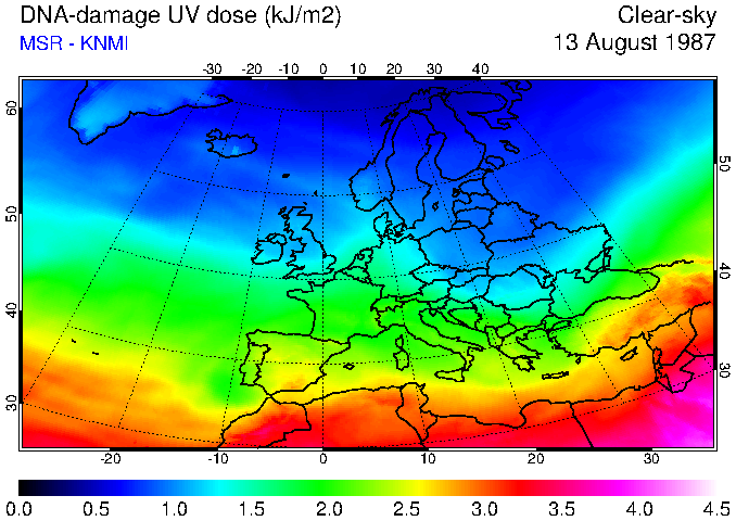 DNA-damage UV dose of 13 August 1987