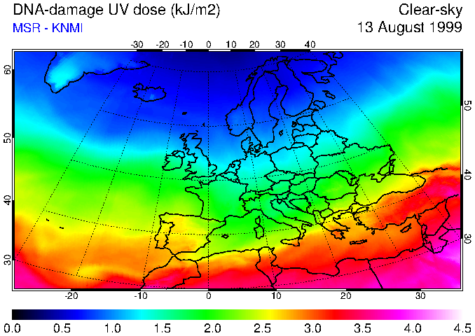DNA-damage UV dose of 13 August 1999