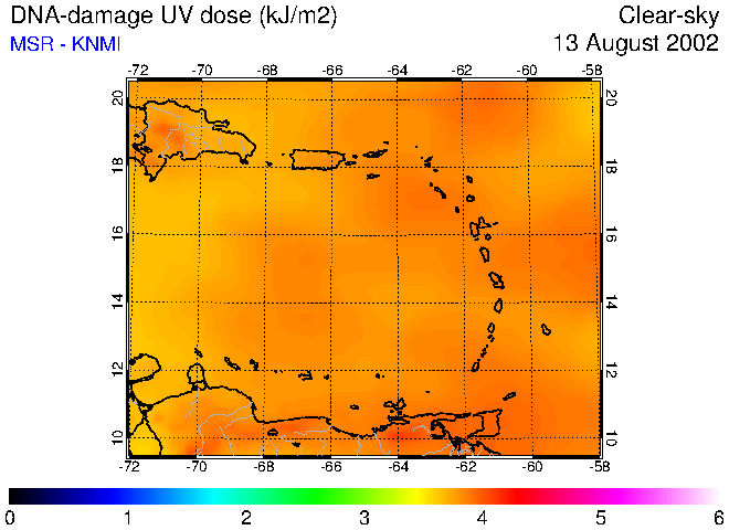 Clear-sky UV index:   erythemal