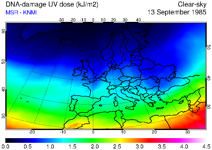 DNA-damage UV dose of 13 September 1985