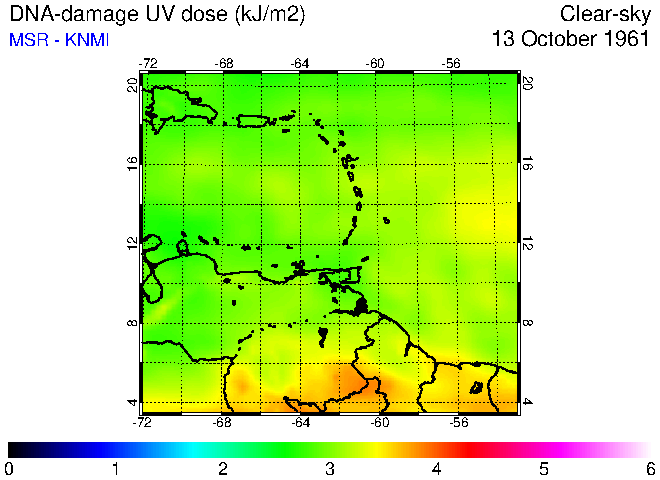 Clear-sky UV index:   erythemal