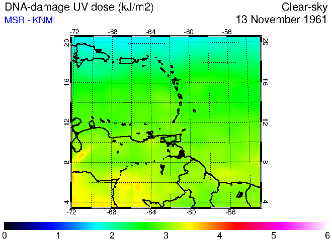 Clear-sky UV index:   erythemal