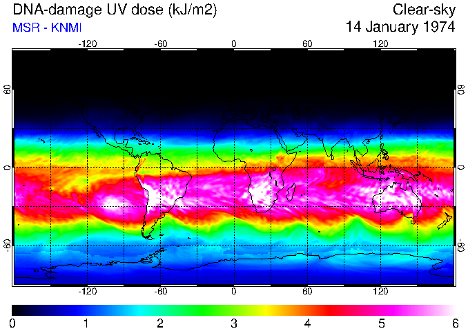 DNA-damage UV dose of 14 January 1974
