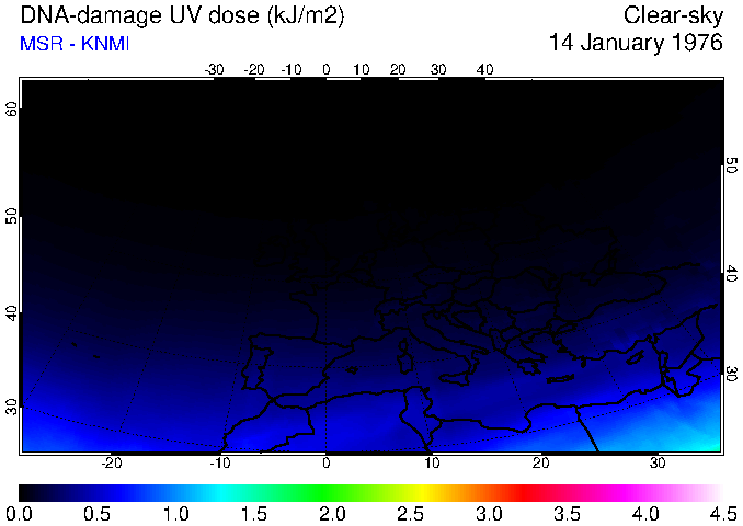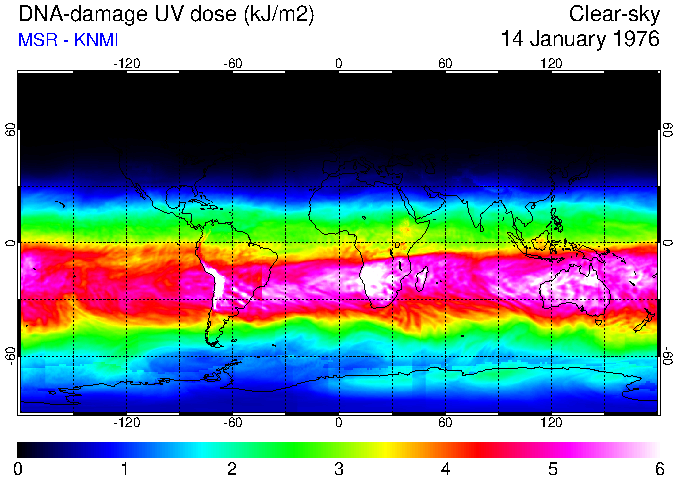 DNA-damage UV dose of 14 January 1976