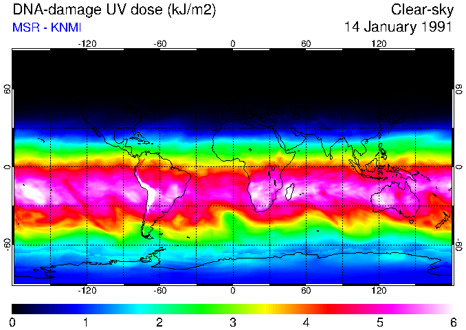 DNA-damage UV dose of 14 January 1991