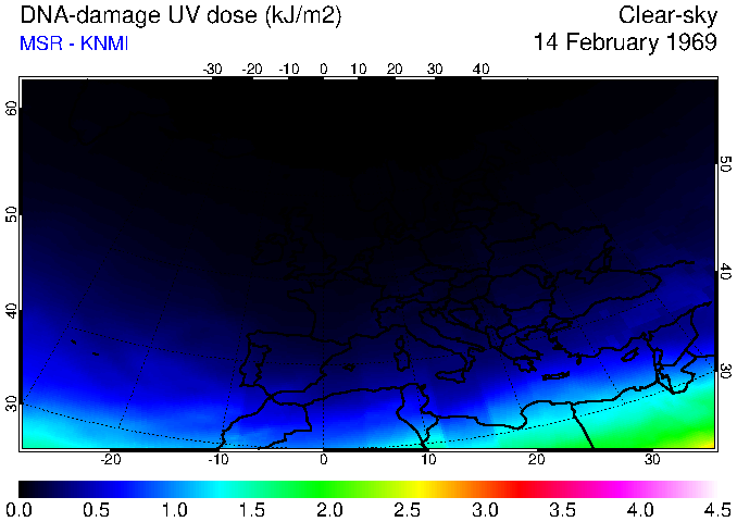 DNA-damage UV dose of 14 February 1969