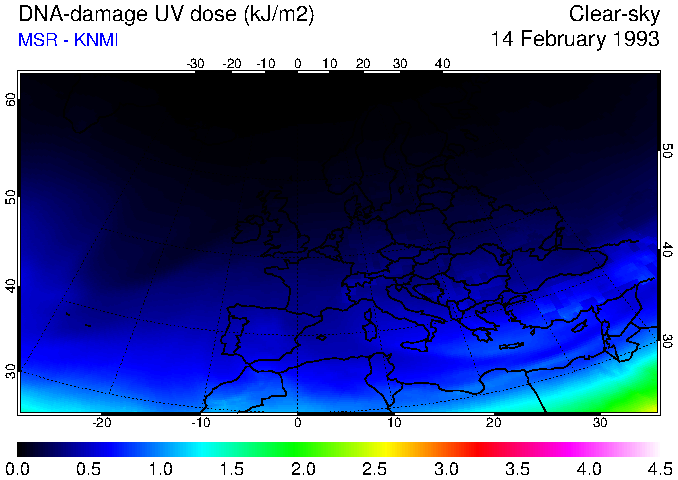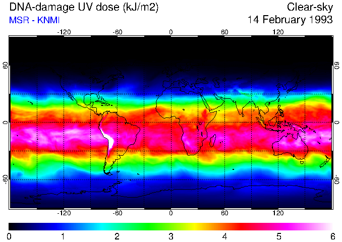 DNA-damage UV dose of 14 February 1993