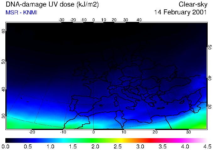 DNA-damage UV dose of 14 February 2001