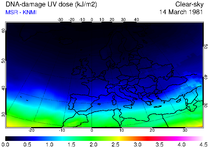 DNA-damage UV dose of 14 March 1981