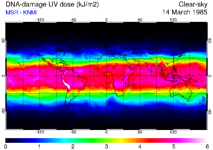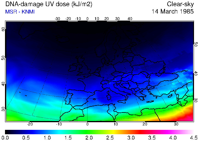 DNA-damage UV dose of 14 March 1985