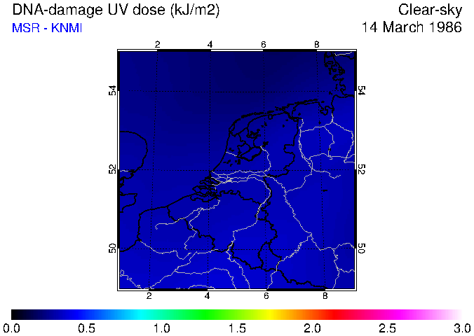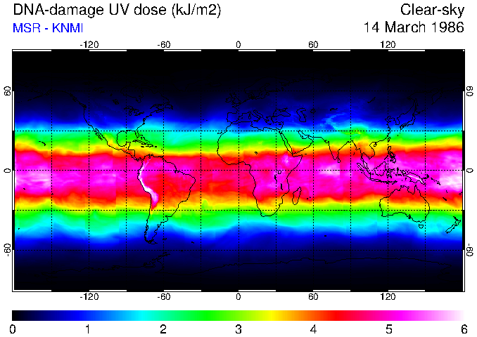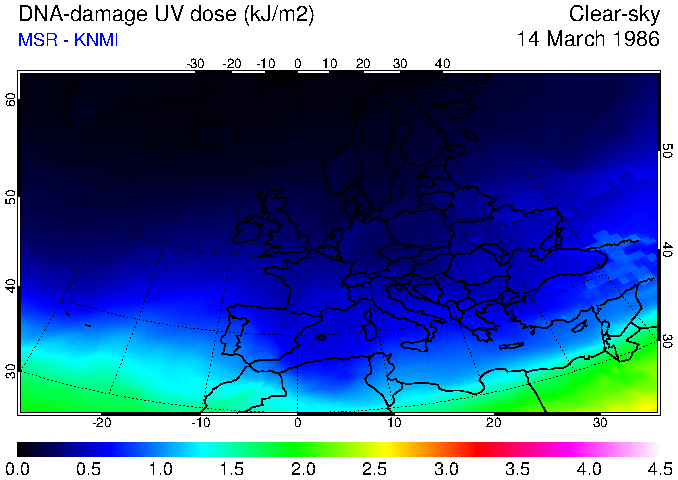 DNA-damage UV dose of 14 March 1986