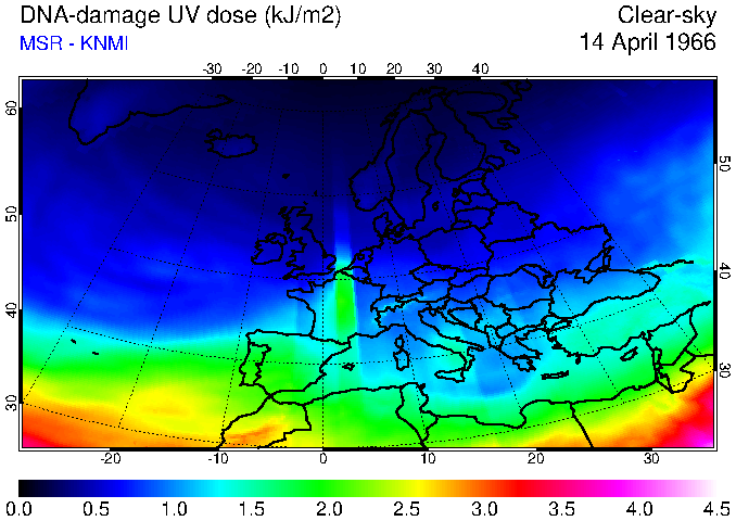 DNA-damage UV dose of 14 April 1966